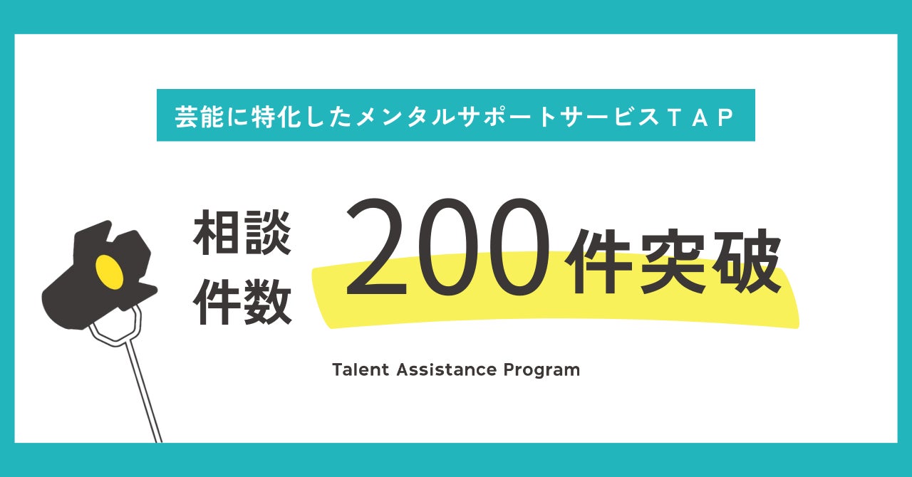 2023年7月13日にサービスを開始した、芸能に特化したメンタルサポートサービス「TAP(ティーエーピー)」を通じて行われた相談件数が200件を突破しました。